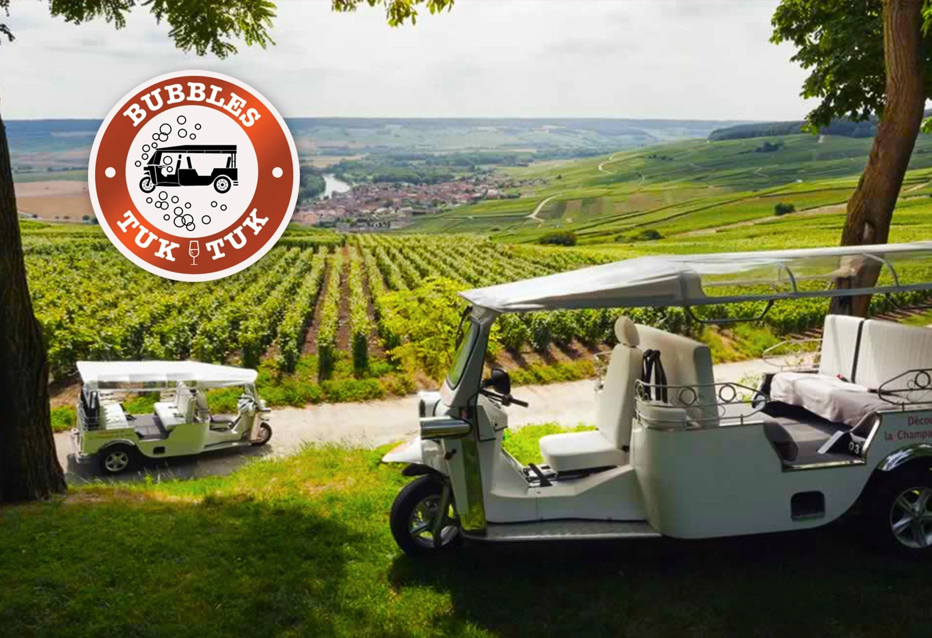 100 % éléctriques, respectueux de l’environnements, nos tuktuks sont le moyens idéal de découvrir la Champagne, Le Vignoble et ses Vignerons